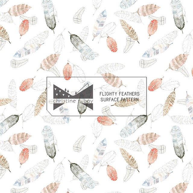 Feathers | Watercolor and ink on watercolor paper, post-processed digitally, repeatable pattern