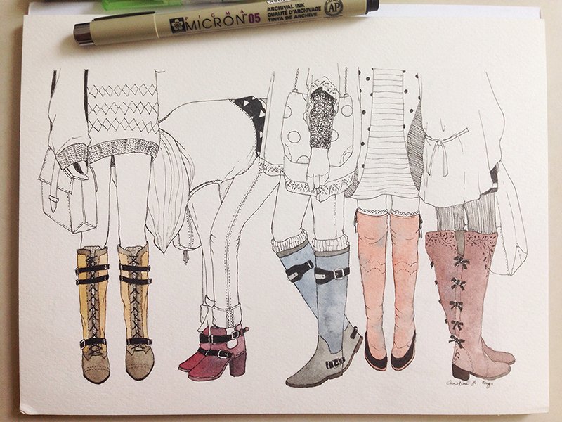 The New Puppy | Each character was drawn using Ink and watercolor on watercolor paper, after which they were stitched digitally.