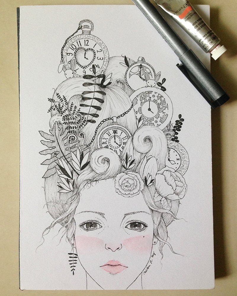 Late for the Party, Rococo-style | Ink and watercolor on watercolor paper