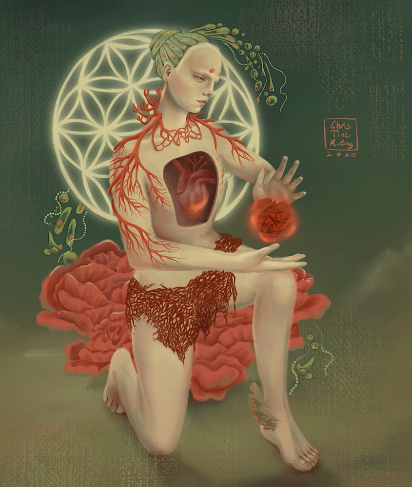 My character, Kiketsuko, is in charge of the physiological aspect and she uses her life force to heal physical ailments. The other characters are Seishi (mental), Ato (emotional) and Miki (the economy).
