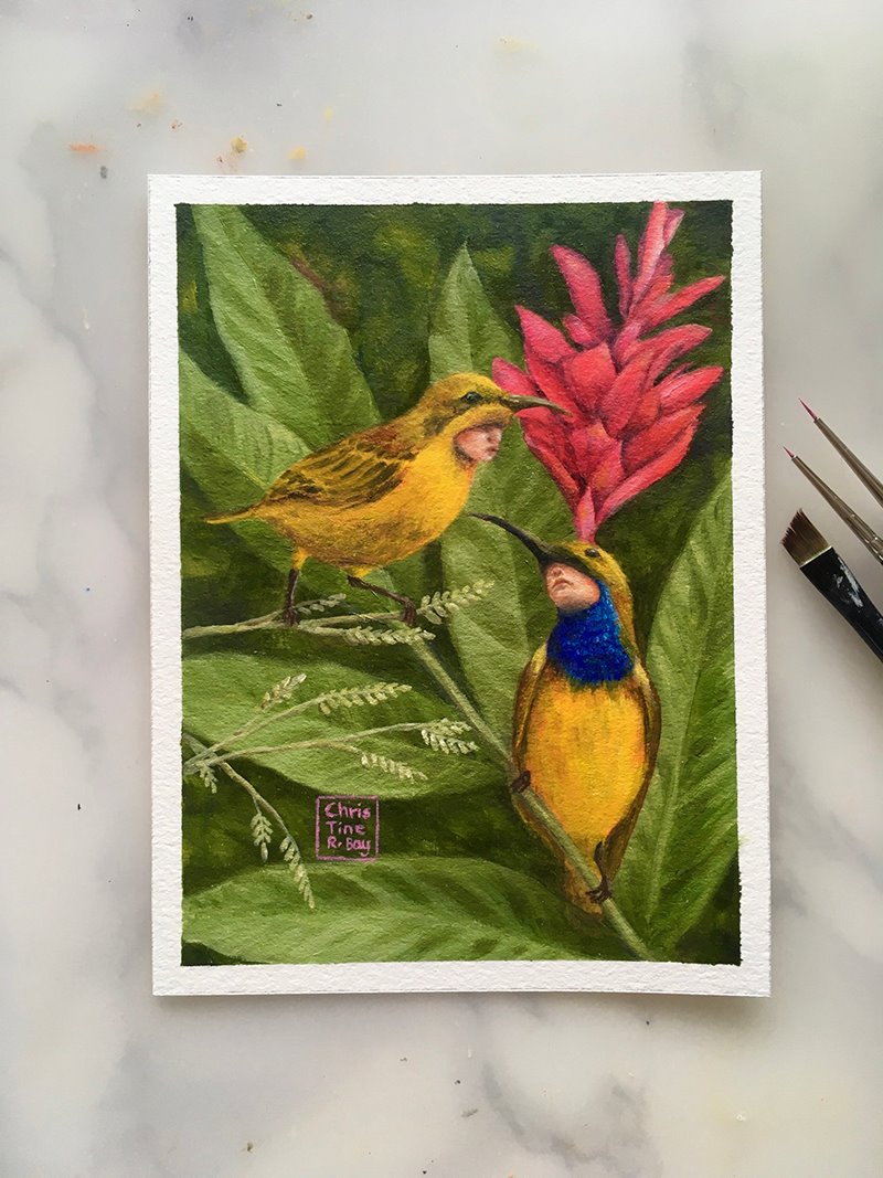 Love Bird is a postcard-sized oil painting that I did and donated to Twitter Art Exhibit 2021 for their charity show.