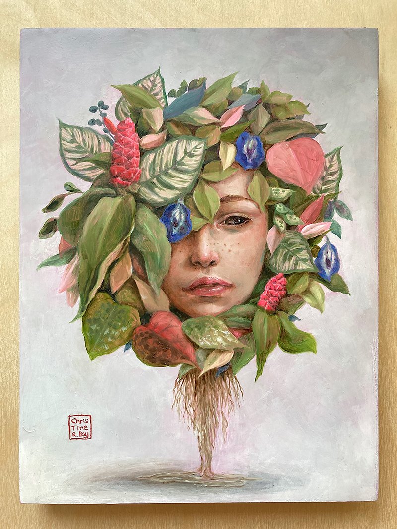 The Nymph of Floral Dreams, oils on 6" x 10" gessoed wooden panel (Sold)