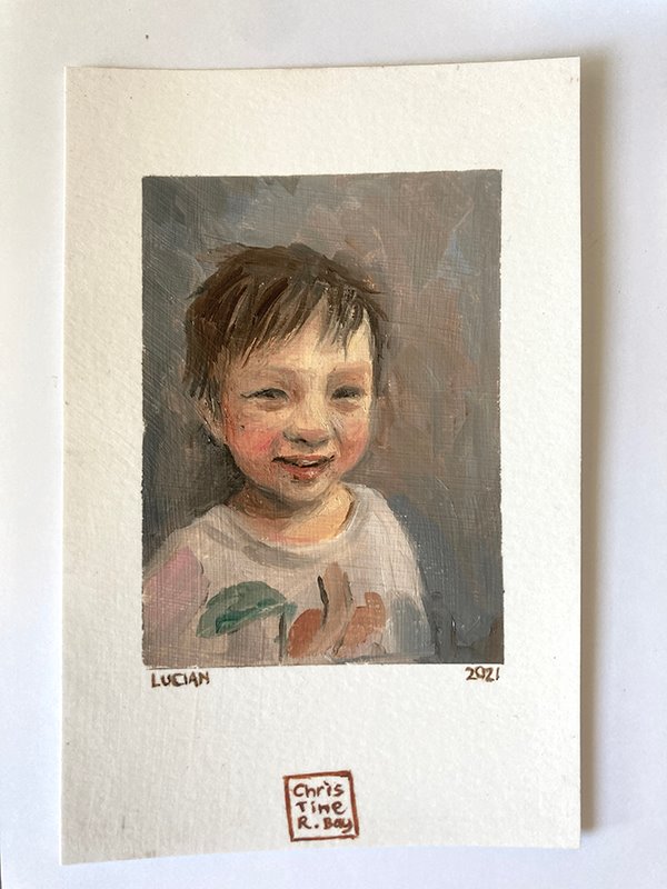 Mini oil portrait on 4" x 6" primed watercolor paper.