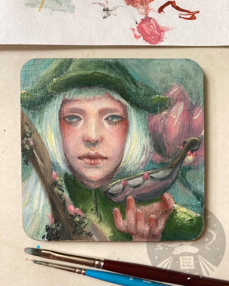 Small oil painting based on a course mate’s art toy for our final assignment.