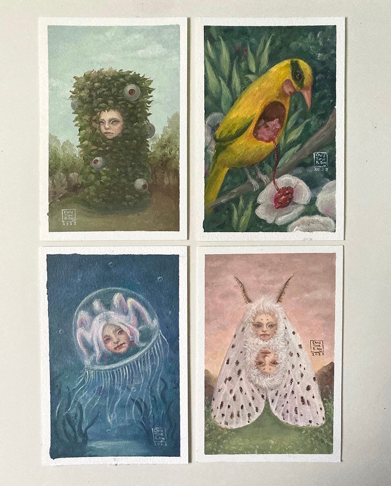 Pameran Poskad is a community show where artists create works that are no larger than what the postcard-sized sleeves (provided by the organizer) can fit. A percentage from the sales of the artworks are donated to the chosen beneficiary of that year.