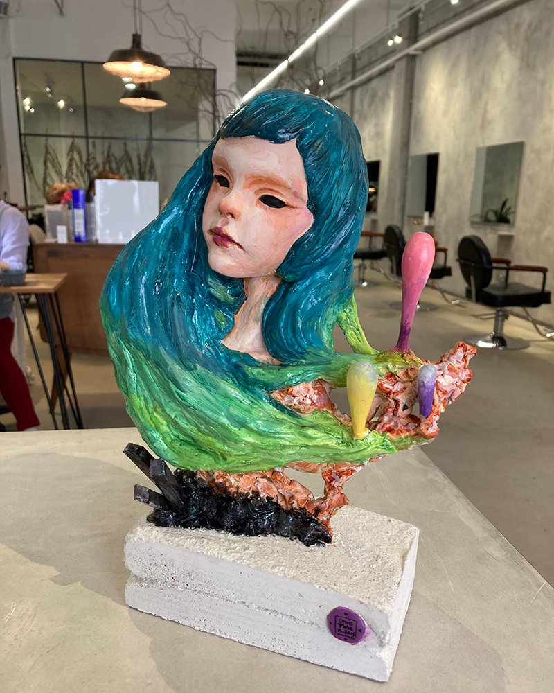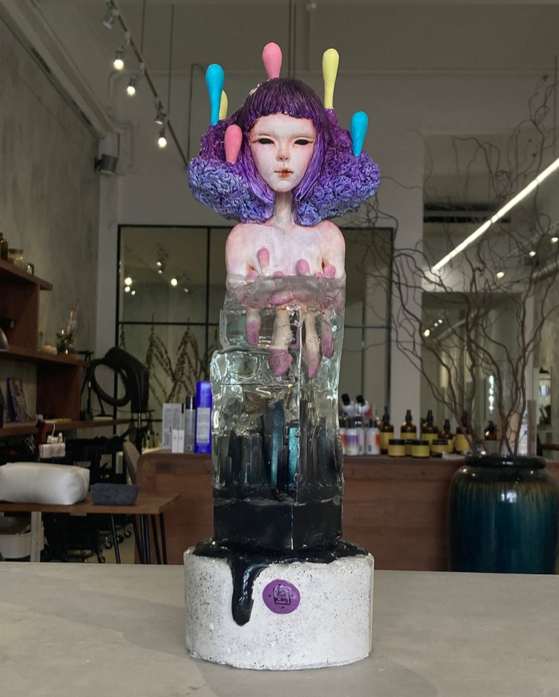 SINGULARITY is a series of sculptures by Christine delving into the complex psychological relationship between technology and humanity.