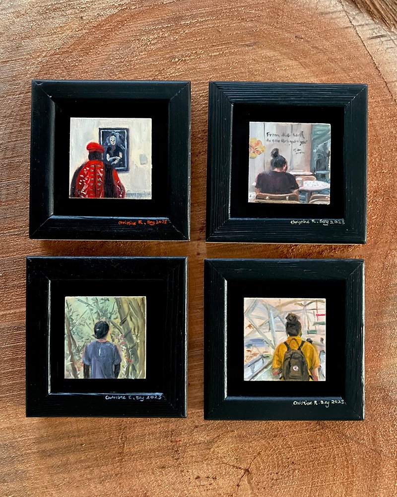 Medium: Oils on primed wooden panels, mounted onto acrylic-painted and sealed cradled wood panels