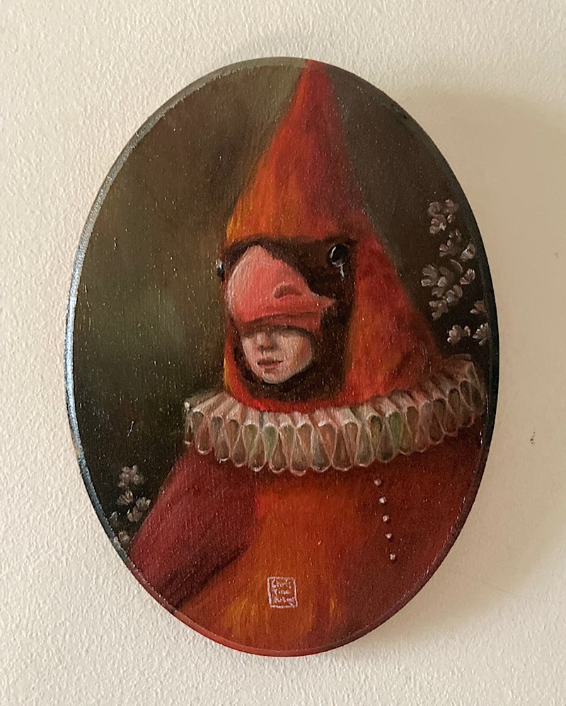 This Northern Cardinal gentleman has been possessed by the Renaissance Man, He might now be the masters of unlimited disciplines, but he is trapped by the burden of infinite knowledge.