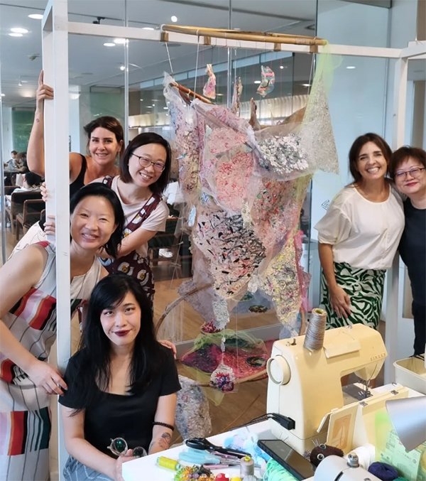 Collaborative soft sculpture installation with the Textile Paper Lab team at Sg Eco Arts Fest held at Library@orchard.