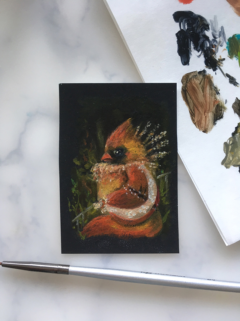 Mini oil painting on Arches oil pad paper re-primed with black gesso.