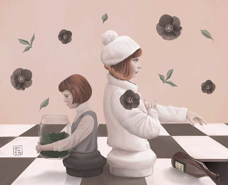A digital piece inspired by the show “The Queen’s Gambit”.